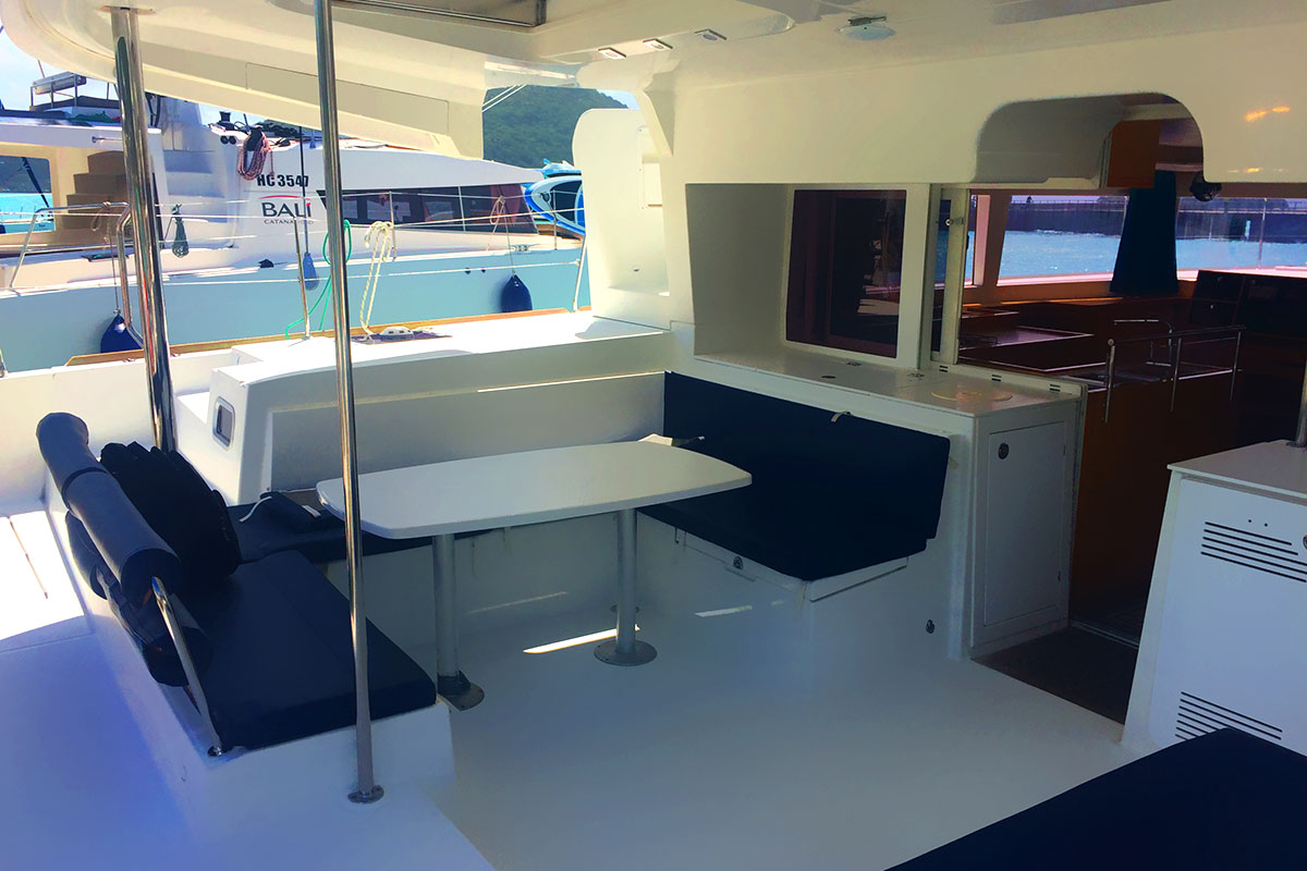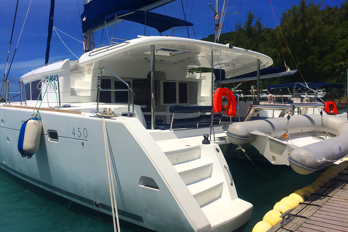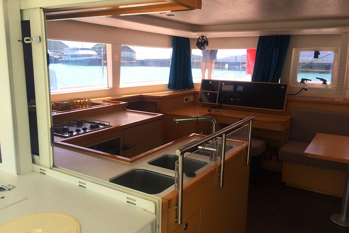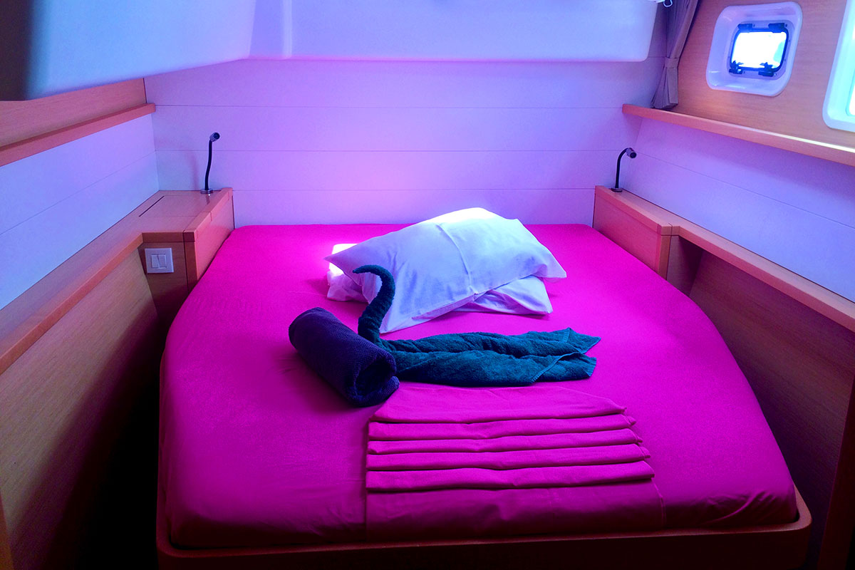 Catamaran avec 4 cabines doubles, équipées de salle de bain avec eau chaude et WC