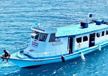 Bateau : 20 plongeurs, équipé de toilettes et d’une douche (eau douce).