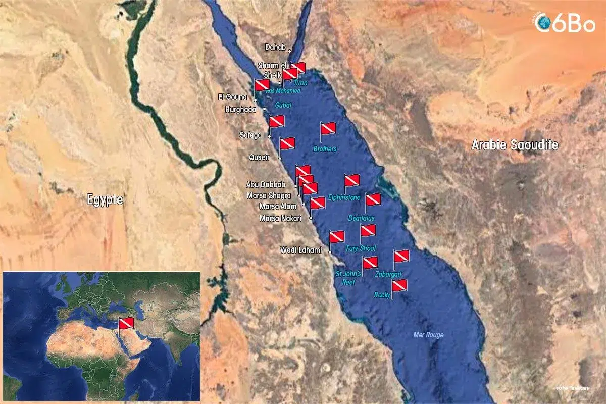Pour vous aider à choisir au mieux votre voyage plongée en Egypte, C6Bo a concocté pour vous un panier des meilleurs sites de plongées d'Egypte. Que vous choisissiez un séjour à terre ou une évasion en croisière, laissez-nous vous aider à trouver ou vos envies vous mèneront !