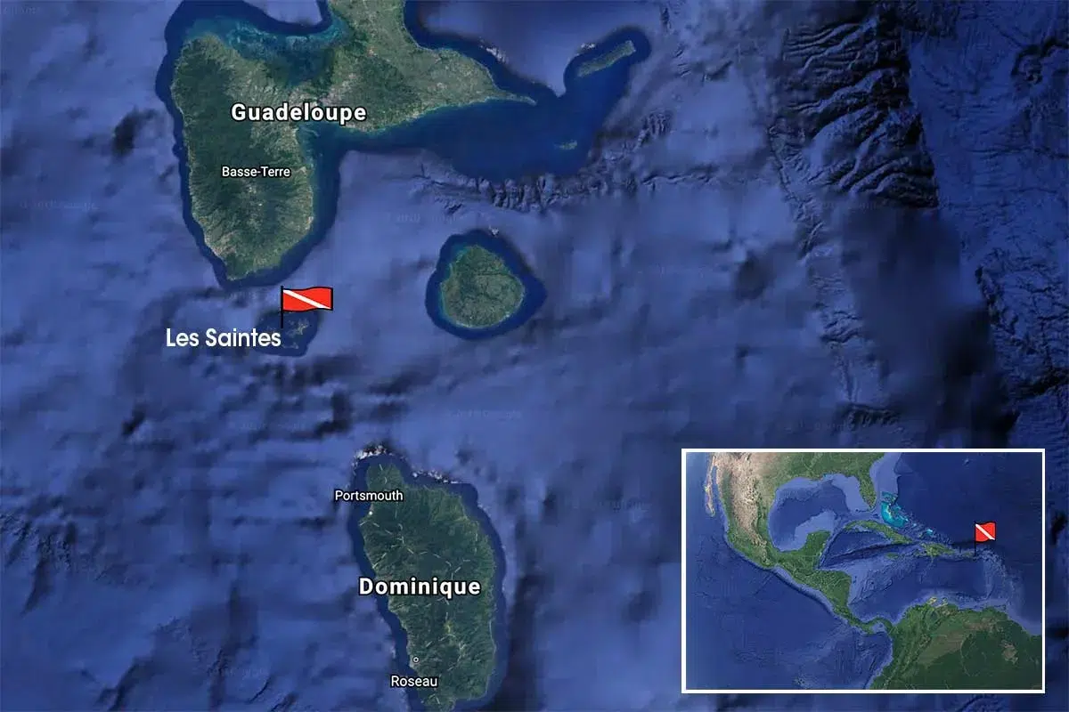 Situé dans la mer des Caraïbes au sud de la Guadeloupe, à l'ouest de Marie-Galante et au nord de la Dominique l'archipel des Saintes se compose de 9 îlets dont seulement 2 sont habités : Terre-de-Haut et Terre-de-Bas.