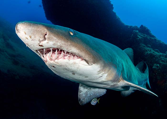 On y trouve de nombreuses espèces de requins, comme le requin à pointe noire, le requin-bouledogue, le requin-tigre et le requin-marteau. Mais la véritable star locale, c’est le requin-taureau, appelé « ragged tooth shark » ou « raggies ». Au-delà de ses rangées de dents pointues et menaçantes, l’approche paisible de ce colosse des profondeurs est très appréciée des plongeurs.