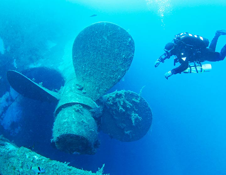 Récifs coralliens éclatants, épaves historiques, aquarium vivant