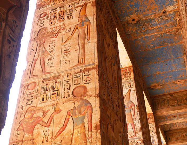 Embarquez pour une aventure sur les traces des pharaons. Visitez les temples et monuments ornés de statues et de hiéroglyphes et plongez au cœur de l’histoire de l’Égypte antique !